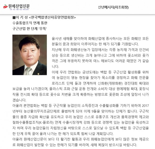 2025 원예산업신문 신년메세지 (한국백합생산자중앙연합회장 이기성)