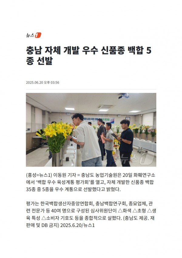 뉴스 1 충남자체개발우수신품종백합5 종선발